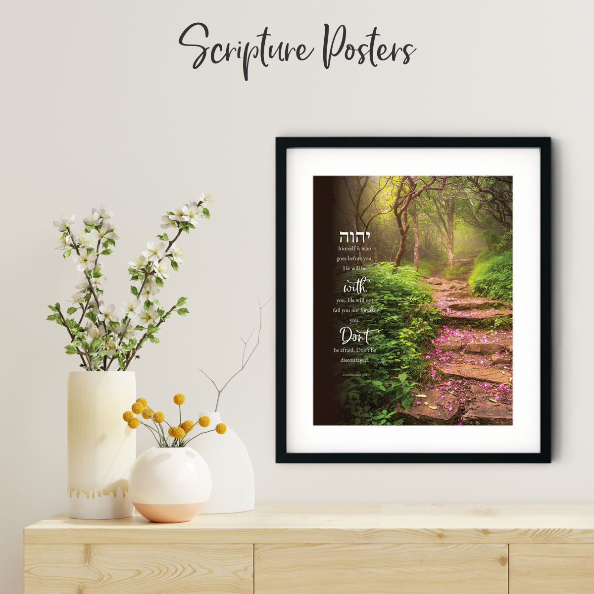Poster: He will be with you. He will not fail you nor forsake you. Deuteronomy 31:8