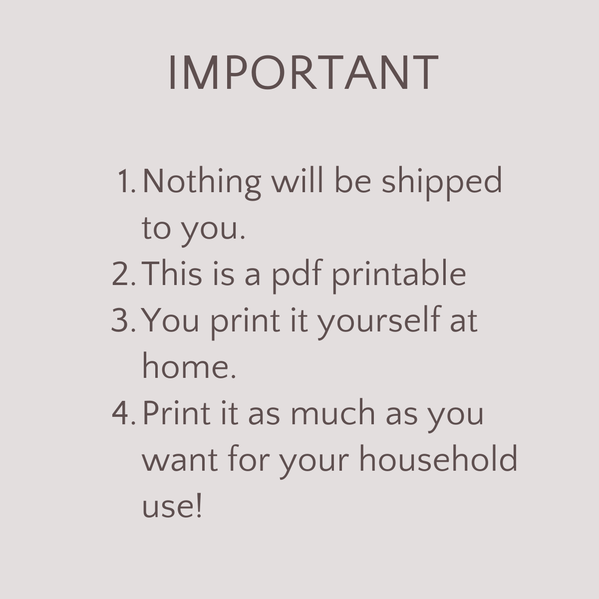 This item is a digital file that you download and print yourself. Nothing will be shipped.
