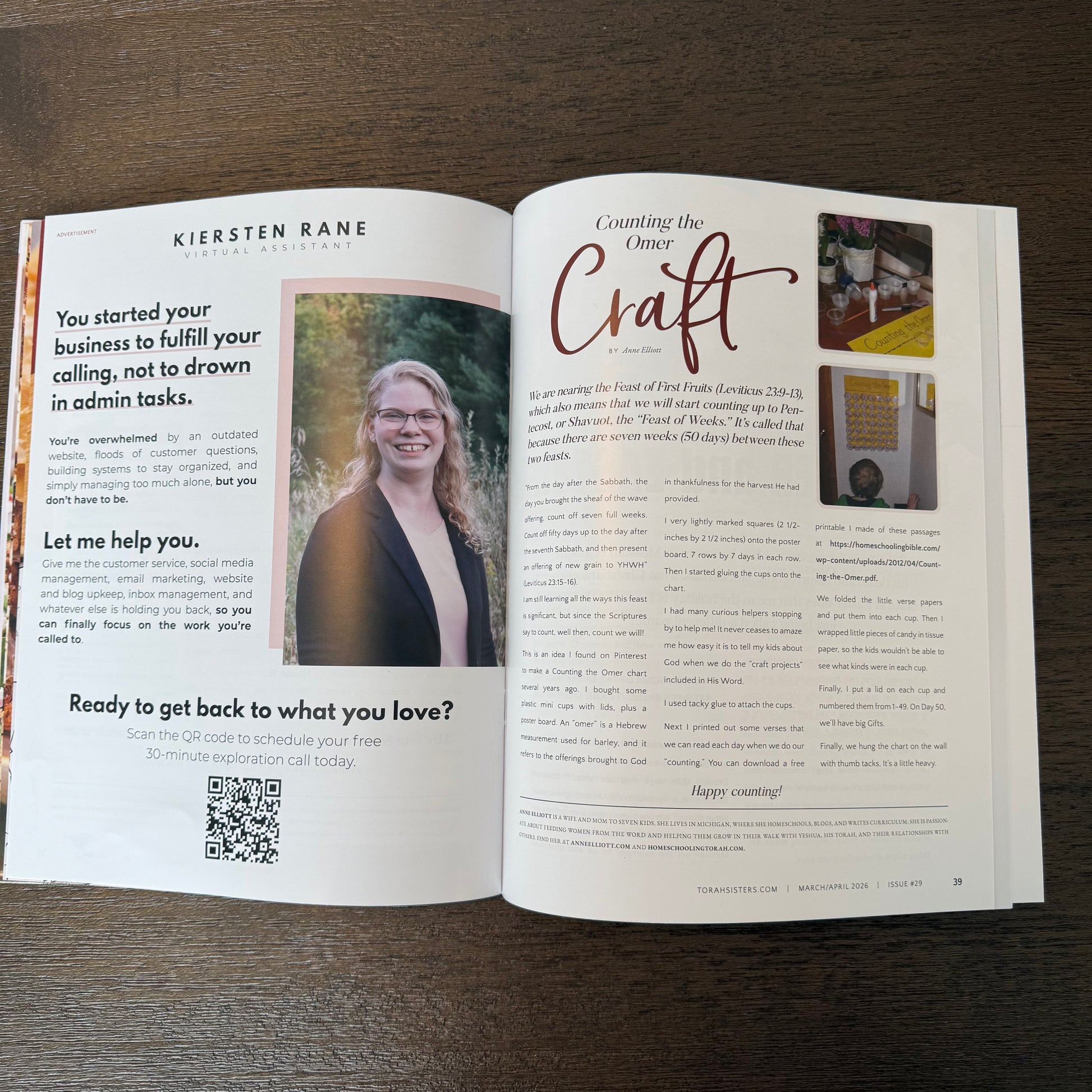 The magazine is a work of love from Todd and me, the authors, and the advertisers. The previous issues have been an enormous blessing to Torah Sisters worldwide, and I know this issue and those to come will also help in your faith walk. Those involved and I are so excited to bring this to you!